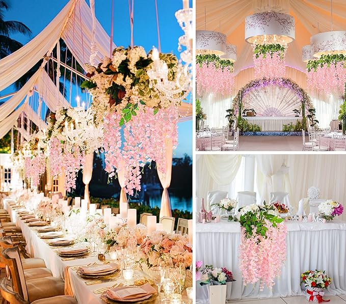 Realistic and Natural: Hanging Wisteria Artificial Flowers are well made and vibrantly colored - look and feel just like real flowers, Pure natural style, simple and elegant. Flows gracefully downward from the main heart of the plant to create the appearance of overflowing.